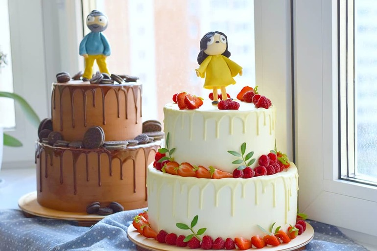 Украшение тортов кремом,шоколадом, фруктамиЧёрное и белое, как две половинки💔одного целого, мои креативные клиенты 👩❤️👨, так решили.. что хотят два свадебных ТОРТа💒, вместо одного..🎂😌