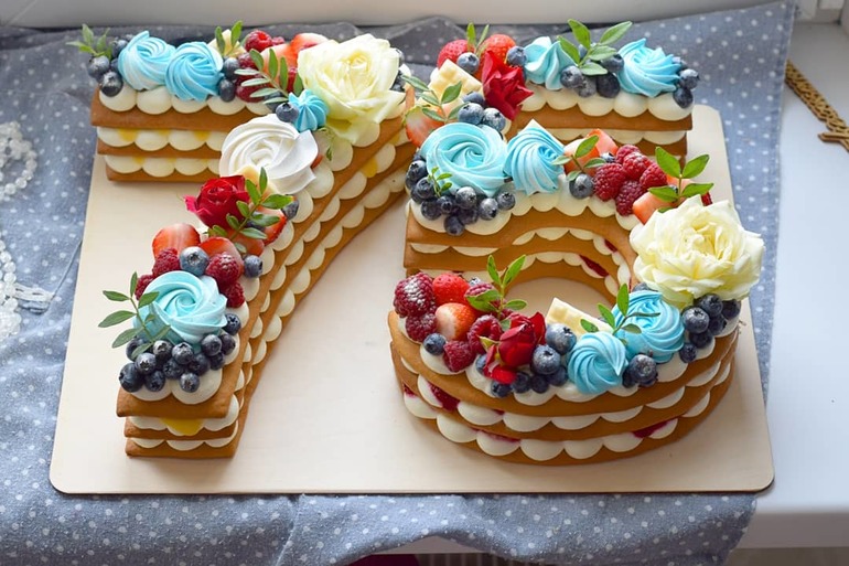 Мягкие Медовые коржи сливочно-сырный крем 😋 и одна цифра с манго-маракуйей, а другая с малиновым соусом.