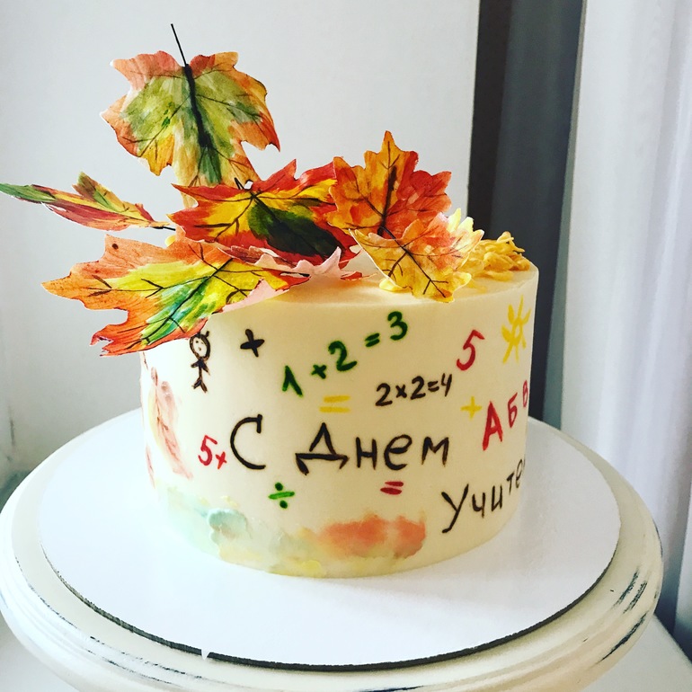Внутри "красный бархат" с крем-чизом. Покрытие-крем-чиз. Декор-вафельные листочки, шоколад и рисунок по крему.