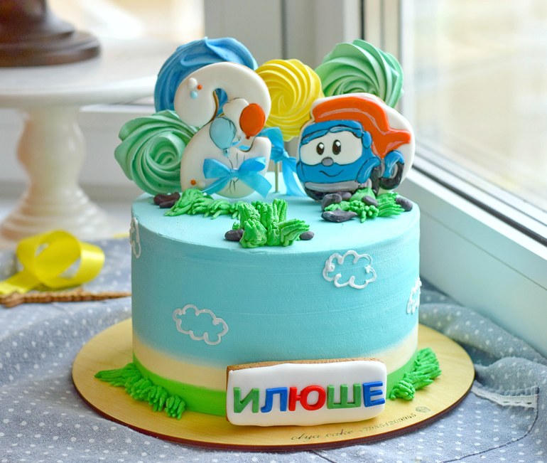 Украшение тортов кремом,шоколадом, фруктамиДетский торт с кремовым покрытием, 2,5кг.