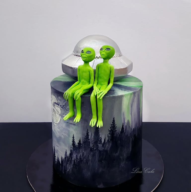Зашла сначала в инсте и сразу же на торт наткнулась и роспись твою сразу признала) причем настолько сразу, что даже ЗЕЛЕНЫХ человечков не сразу увидела)))