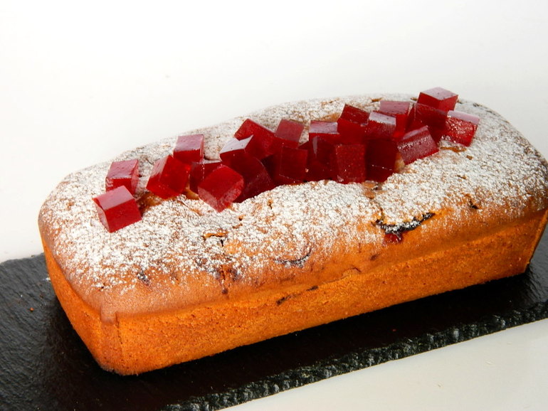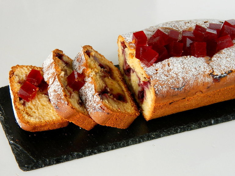 Кекс йогуртовый с малиной и ежевикой. Декор: кубики малинового мармелада.