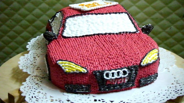 Я бы сделала песочный с каким-нибудь джемом, выровняла тонким слоем шоколада, покрыла белковым. Второй вариант испечь хороший кекс толстый на манер американских, из него прям вырезать машину и просто покрыть кремом, без внутренних заморочек.