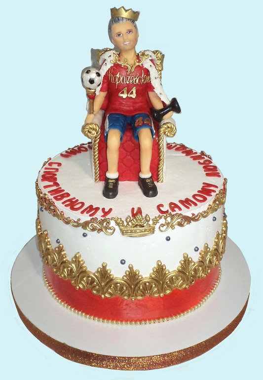 Украшение тортов кремом,шоколадом, фруктамиНе буду бить себя в грудь и кричать "лепка без молдов". Лицо - молд какого-то Кена. Руки - ноги, тоже китайские. Королевский - это настоящая фамилия именинника. Крем - белковый заварной. Вес фигурки с троном - 650 г. В троне - вафельные листы с ганашем, лучше брать вафли, но у меня не нашлось.