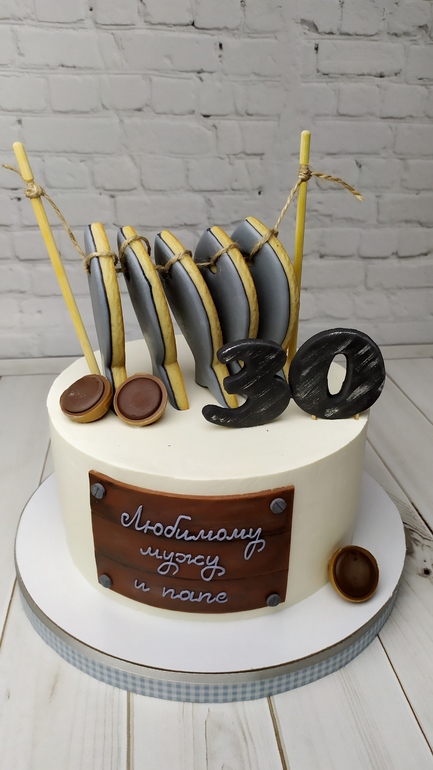 Украшение тортов кремом,шоколадом, фруктамиЕще один тематический торт - на этот раз мужской. Жена заказала для мужа. Причем прислала фотку торта с пряничными звездами, усами... и пишет: