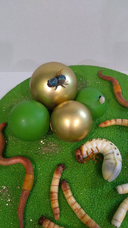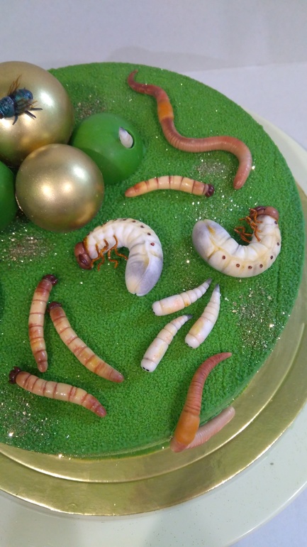 Скажем, что возможности кондитеров безграничны))... если все совпало : пожелания заказчика и интерес поработать в этой теме у кондитера, то ,при наличии мастерства у второго, получаются отличные торты...не все они являются обьектами эстетического наслаждения для массы людей, что и не всегда нужно .. так и в этой конкретной ситуации.... Выполнены черви с любовью к своему делу))) и это видно.