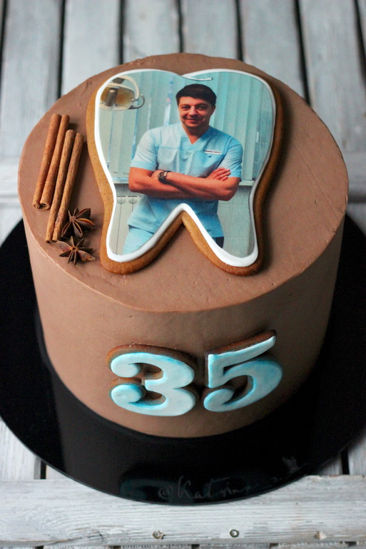 Украшение тортов кремом,шоколадом, фруктамиТорт мужской - 3,7 кг, шоколад-пралине с вафельной крошкой-карамель -много орехов, покрытие - шоколадный кремчиз, в том году я его лепила, в этом - фотопечать и большой имбирный пряник-зуб )) все выдумки жены-стоматолога)))