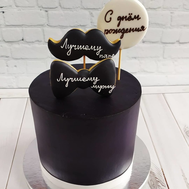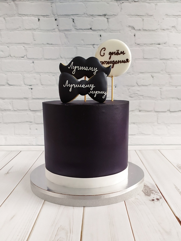 Торт с минимальным декором. Больше и нечего сказать))). Молочная девочка с клубникой рулит)) 2 кг. На леденце надпись шоколадом. Под катом ещё фото с другого ракурса.