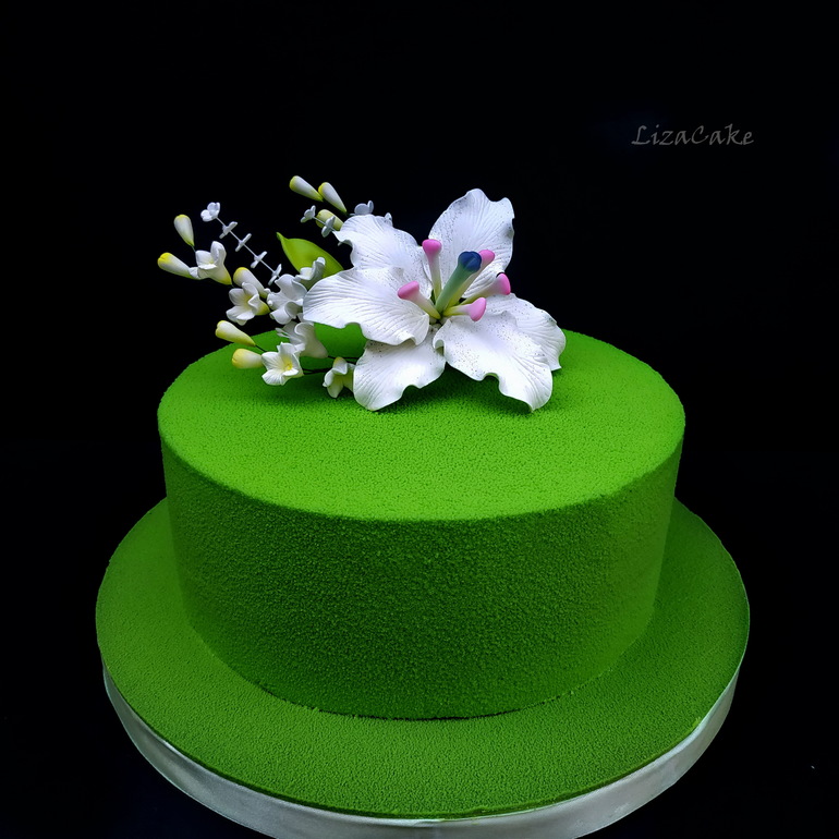 А вот букет - сие не моих рук дело.. он был ранее куплен в кондитерском магазине на случай атомной войны и тут же был забыт, потому что я и цветы находимся в разных вселенных.. Я реально забыла про них прям на следующий день после покупки.. Когда велюрила торт, то в голове держала мысль "счаз метнусь в цветочный, куплю чонить простенькое и нежное, сделаю композицию", а потом полезла в шкаф и на меня практически свалилась коробка с этими цветами.. Чисто на автомате поймала, но не поняла что это упало.. Открыла - удивилась.. и подумала, что это знак свыше))