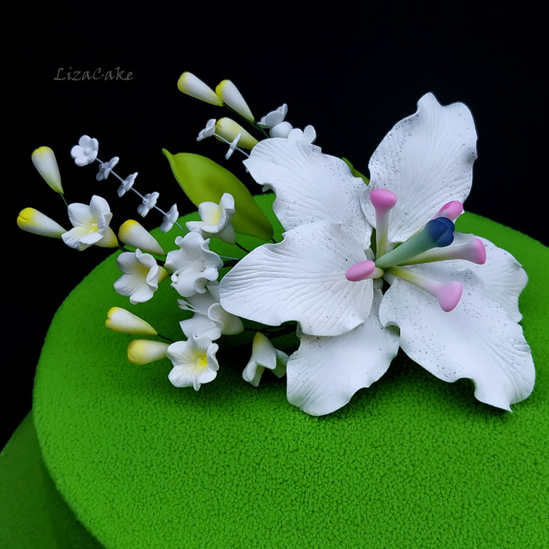 В итоге он стал ровным, завелюренным и с цветочной композицией сверху.
