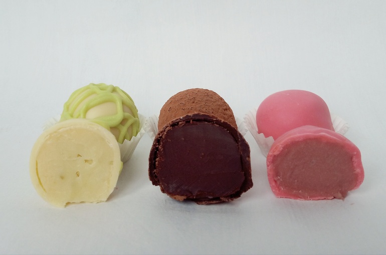Немного о конфетах. Это оказался просто интереснейший увлекательнейший процесс. Делаю их второй раз в жизни, первый раз был во время обучения осенью, сейчас захотелось повторить. Делала что попроще, но получилось очень вкусно, очень. Трюфели из темного шоколада, зелененькие - лаймово-кокосовый ганаш, розовые из малинового ганаша, тут немного не угадала с пропорциями, слишком мягкие вышли и некоторые приплюснулись.