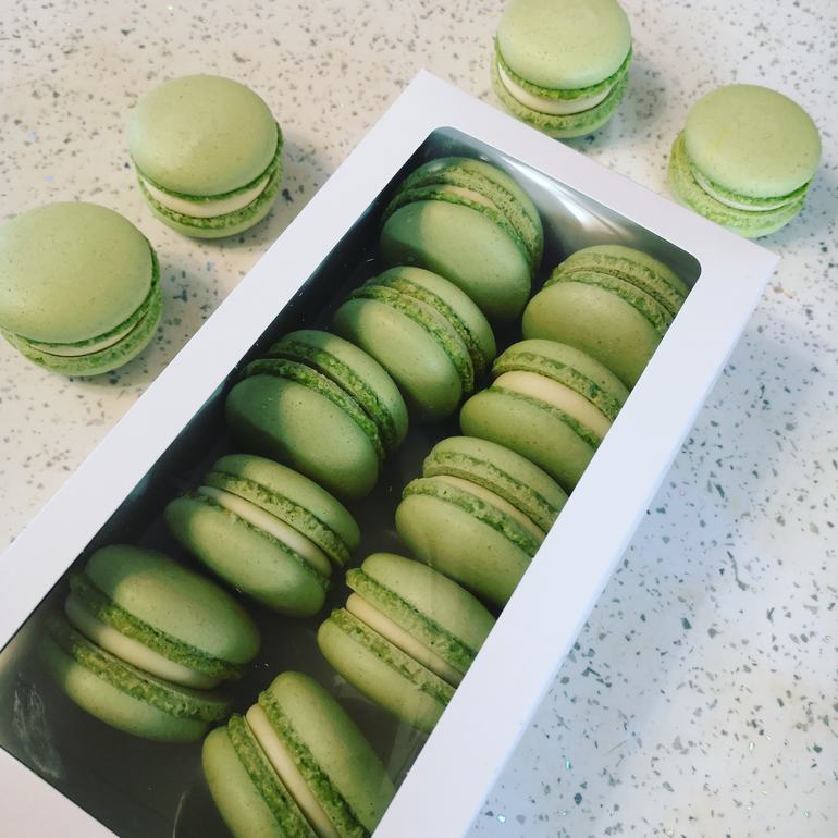 Я покупала урок по макарон) тасюм очень много нюансов. А мука обычная миндальная, просто краситель зеленый добавила)