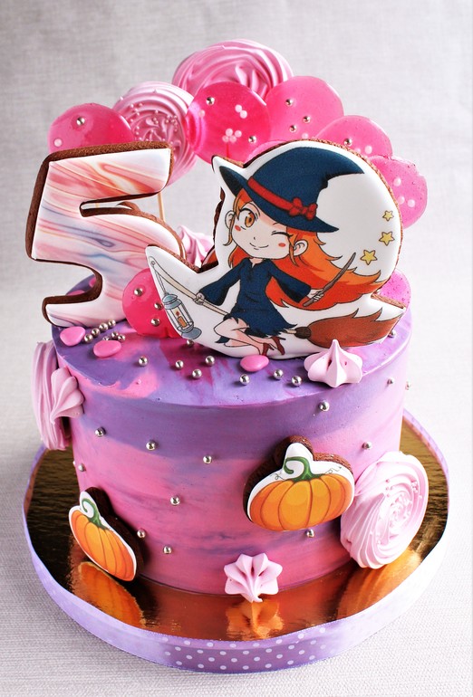 Именинница хотела видеть на своем торте злую колдунью, но они все какие-то злобные старухи с бородавками. Поэтому в конечном варианте торт украсила эта веселая ведьмочка...