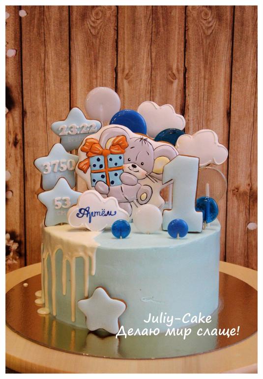 Для моего любимого крестного сыночка родился вот такой торт с мышонком.