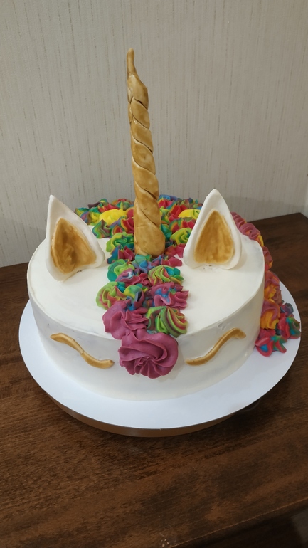 Есть вариант единорога попроще,чем фигурка разноцветная.Правда,без радуги.Дочке на ДР делала