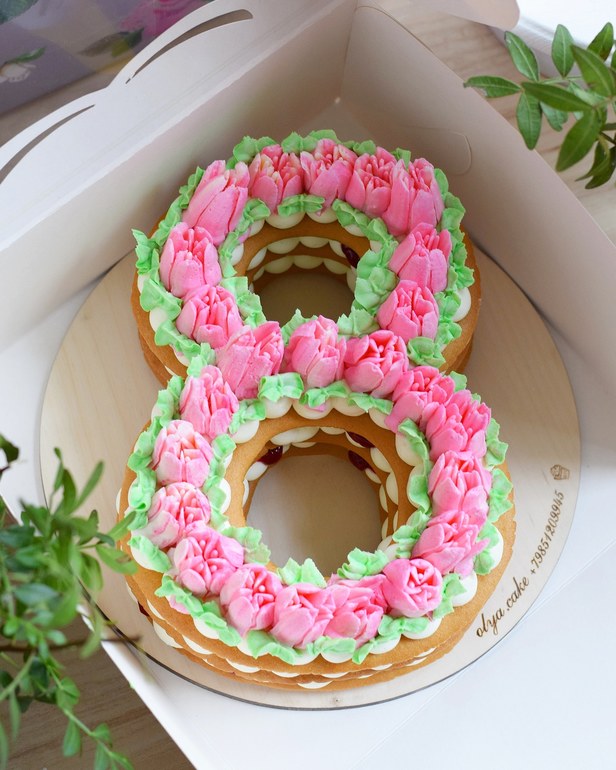 Украшение тортов кремом,шоколадом, фруктамиМедовый торт-цифра с нежным сырно-сливочным кремом и малиновой начинкой. Вес 1,5кг