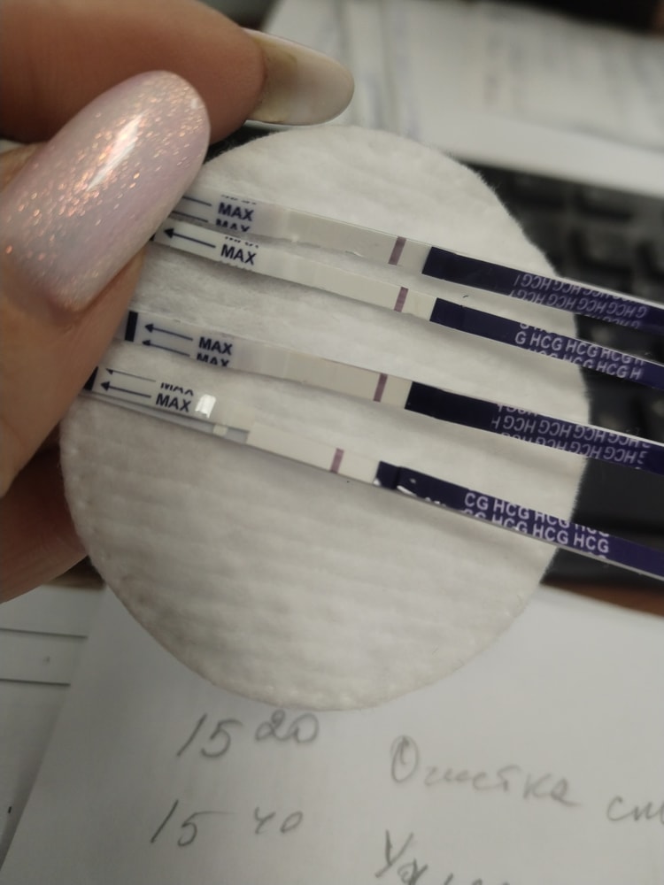 Есть ли динамика ? Одинарный вчера. Два сразу сегодня утром. Но почему то другой фирмы тест молчит. А эти полосатят. Возможно что если реагента мало, полоска не показывается пока? На другом даже контрольная тусклая. А на этих яркая