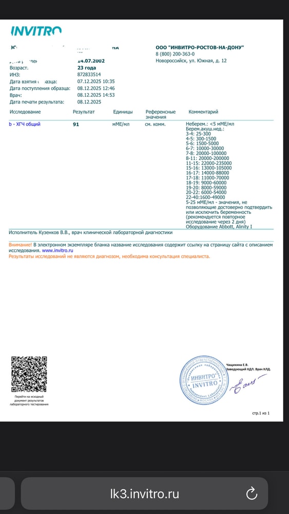 Кто нибудь может рассказать по анализам хгч беременна или нет?
