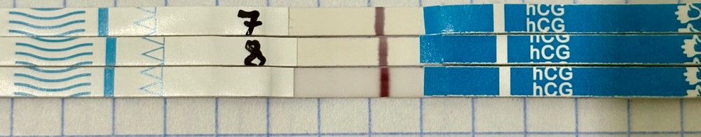 Вчера и сегодня утром были чистые. Сегодня 8 дпо. Сделала первый - какой то полу бракованный , сделала второй , на обоих вижу