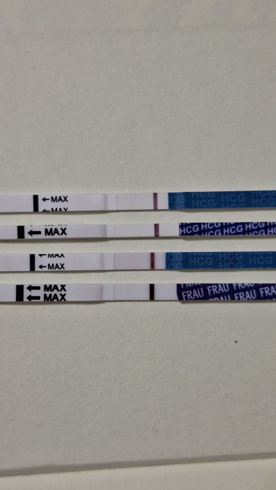 Грудь сдулась, но живот вчера потягивал и яичники чувствую🤷🏽♀️ тесты в комментарии.. с такими «полосочками» пошли бы на ХГЧ? 🤞🏻☺️