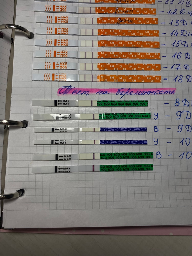 Добрый день, девочки. Я новенькая. Планирую 3 беременность. Подскажите, пожалуйста видите ли вторую полоску на тестах? 2 теста верхних 10дпо, 2 нижних 11дпо. Примерно, 100% не знаю дату овуляции.