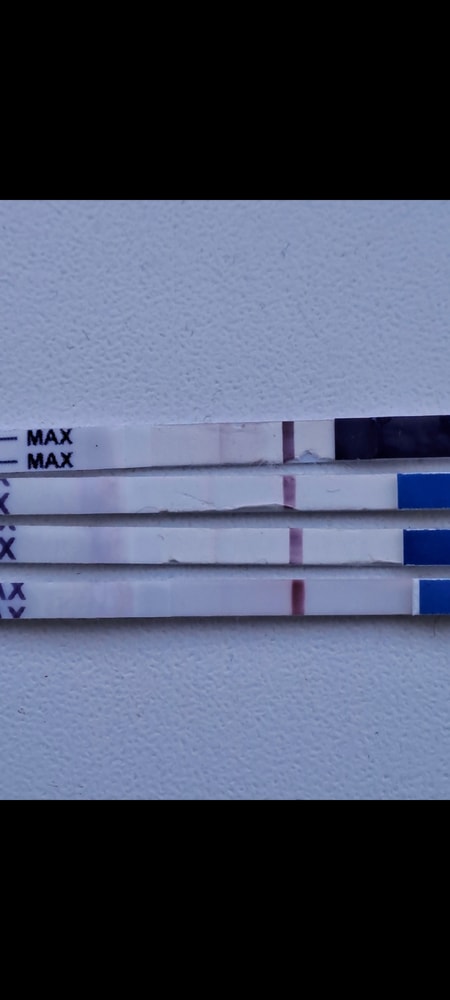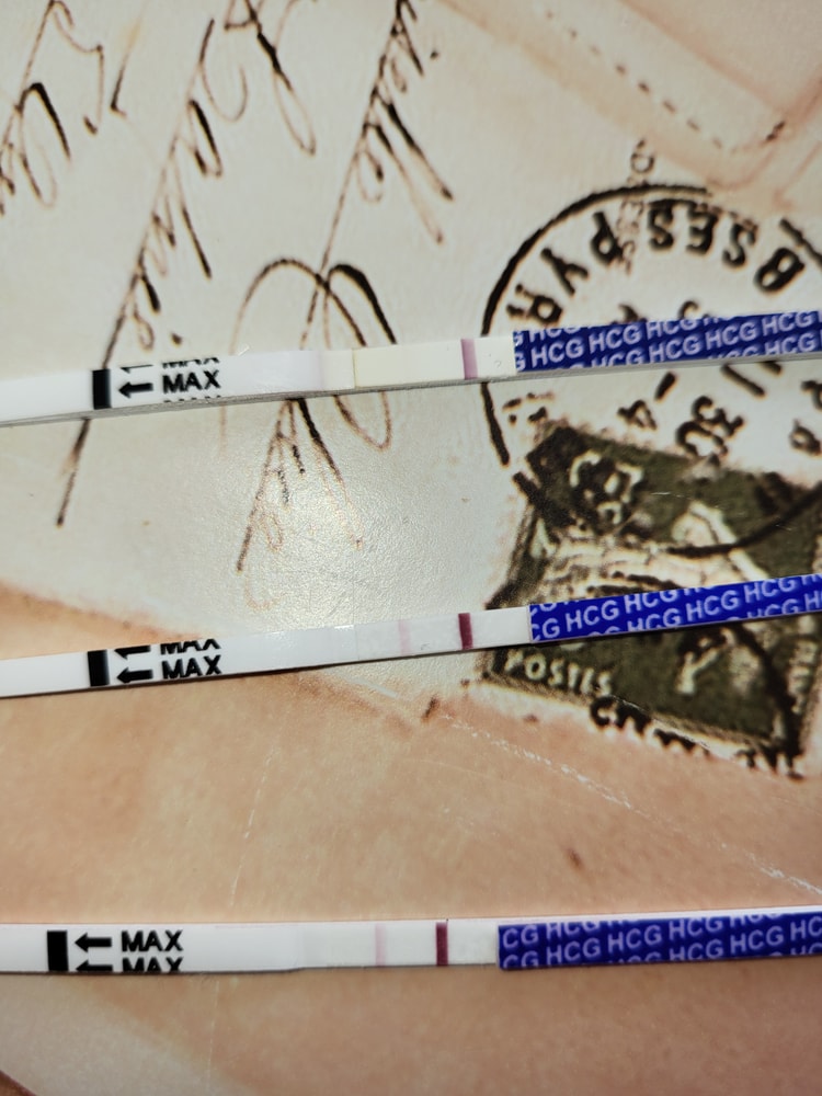 Задержка 1 день , решила купить тест , сделала была 1 полоска , а потом как высох я вижу бледную вторую полоску 🤯 или может тест бракованный ? Сейчас уже ночь , за тестами пойду с утра , подскажите , у кого так было на 1 дз ? Не дает покоя мне это. На 1 фотке это сразу как сделала