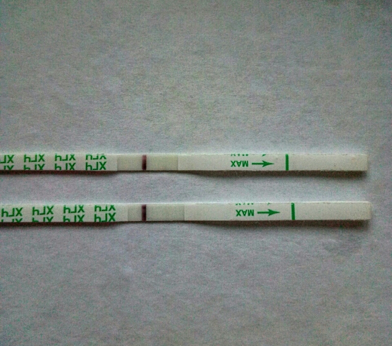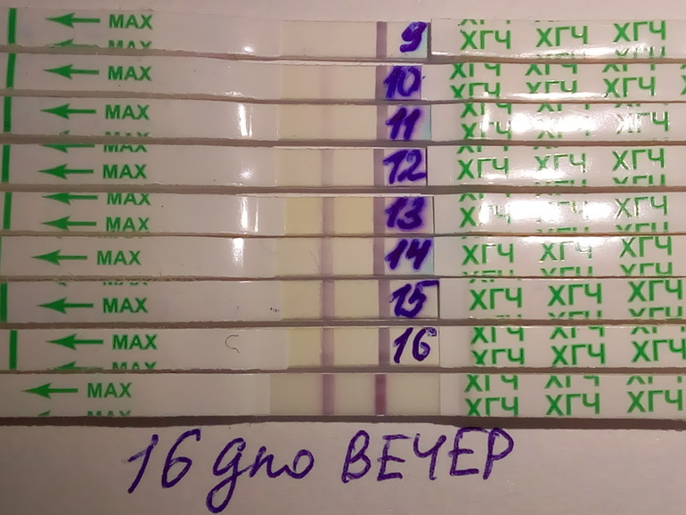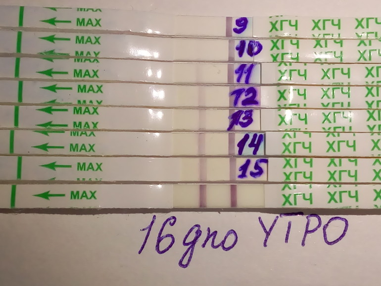 Теперь наблюдаю как бледнеет контрольная полоска, так как тестовая достигла своего пика яркости. Всё наоборот, сейчас контрольная, как тестовая была на 13 дпо