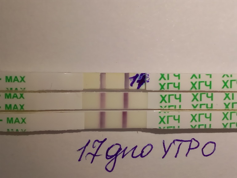 Тесты сделаны из разных партий и везде яркость разная, первый тест на 17дпо утро 4:00 высохшие, два других на 17 дпо утро 9:00. Средний из старой партии на много бледнее, значит срок годности всё таки сильно влияет на результат.