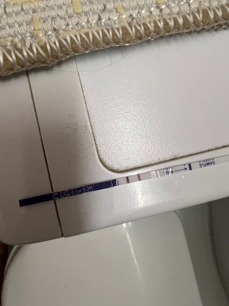 Девочки, привет. Задержка три дня, утром сделала ничего не увидела, решила вечером глянуть на тест и поблазнила полоска) Фото не передает, покрутила немного настройки фотки и вроде что-то есть… или мне кажется…???