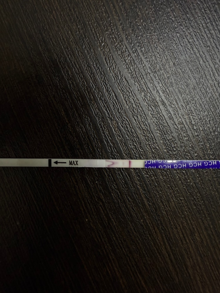 Ситуация следующая. Замочила днём тест, ничего не показал, забыла про него до вечера. Потом просто решила посмотреть что там интересного , а там //. Причем видно неплохо так. Сейчас уже поздний вечер, сделала ещё раз тест в надежде , что что то покажет, но пусто. Я так понимаю просто нарвалась на яркий реагент? У меня задержка 9-14 дней. Но ц