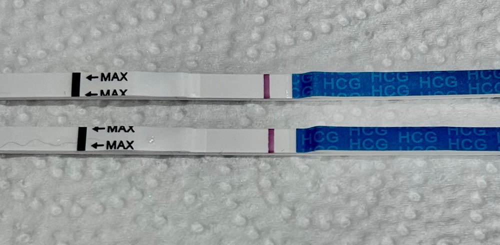 Пока дома есть тесты руки чешутся ) на нижнем как будто что то есть