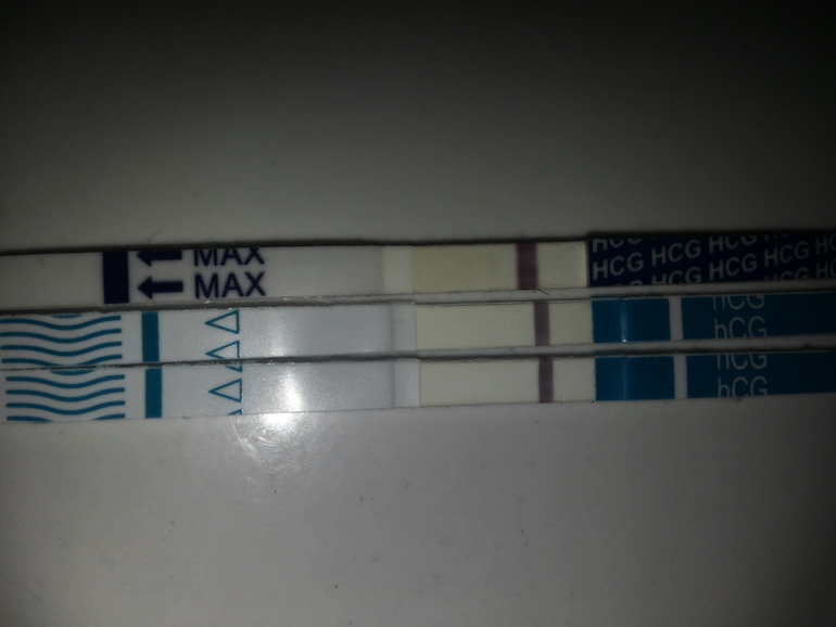 Верхний Фрау на 7 дпо, соответственно средний на 8 дпо и нижний на 9 дпо (оба нижних - home test).