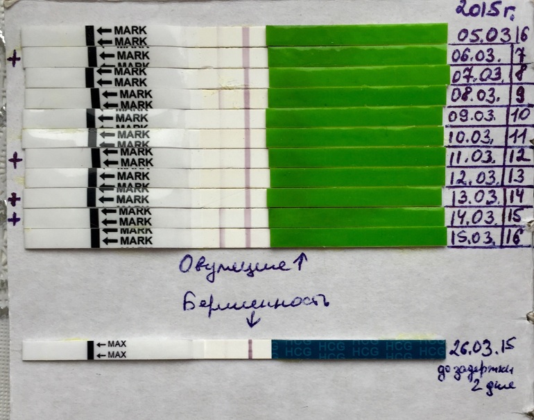 Девочки милые, хочу поделиться тестиками. Цикл 28 дней, на 14-15 марта тесты на овуляцию положительные. Секс отмечен крестиками. Делаю тесты с 7ДПО ( да я сумасшедшая)-даже намека на призрака нет до 10ДПО. Вчера, то есть 10ДПО, вечером, призрак- призрака-призрака на тесте клеарблю ( где плюс, минус- не электронный), расстроилась всё же, ведь на 10 ДПО уже многим показывает нормальные полоски. И сегодня утром то есть на 11ДПО вот такая полосочка ( последний тест на фото) оно ведь? Теперь волнуюсь очень, это первый цикл после отмены ОК ( в декабре была замершая ) вот хотела поделиться кому интересно! Люблю вас!