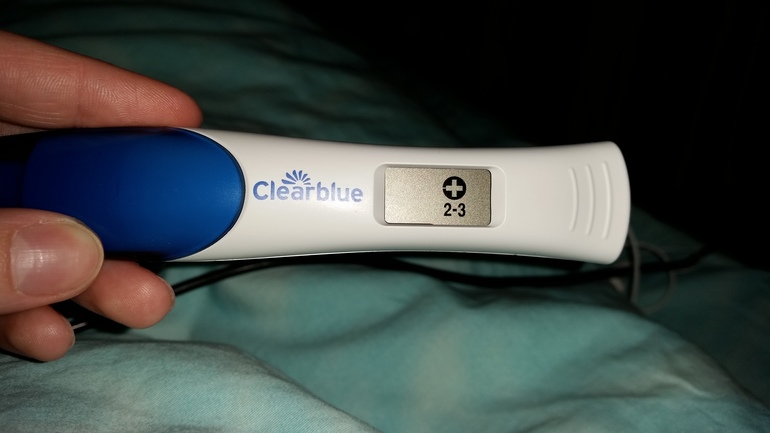 С начало был обычный тест, а потом электронный, лучше сразу покупать электронный меньше гадать, беременна или нет
