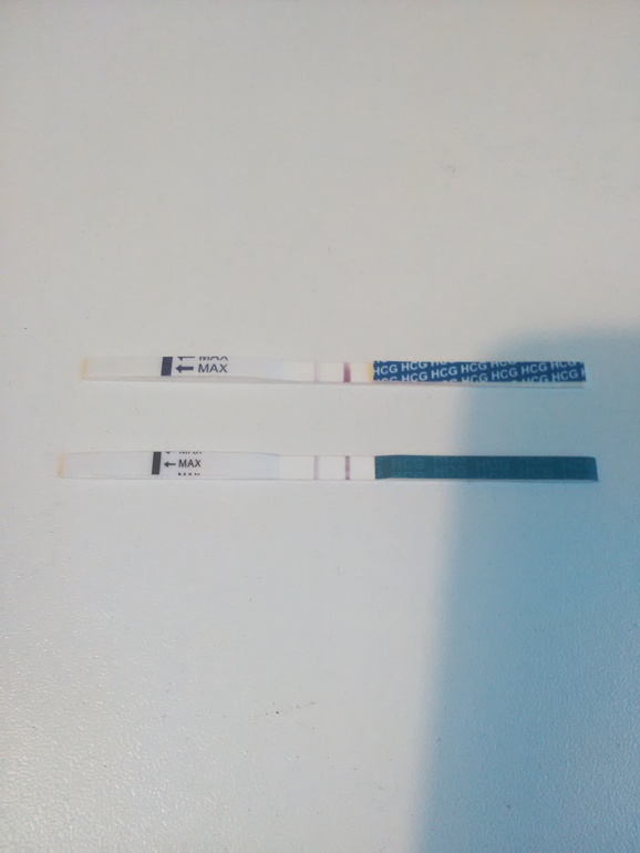Вчера не выдержала, пошла в аптеку. И вот результат! Нижний вчерашний эвик на вечернюю мочу ( сразу обрадовал! Четкая ярконькая полосочка!), а верхний утренний фрау.