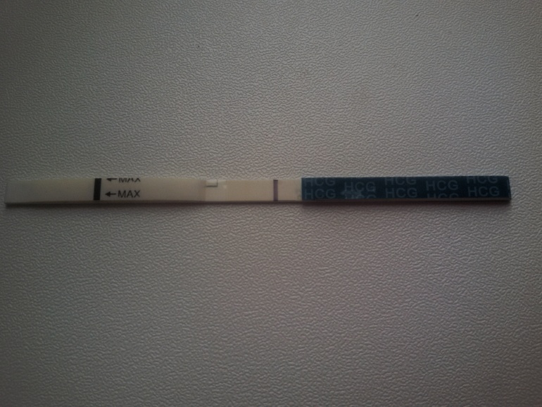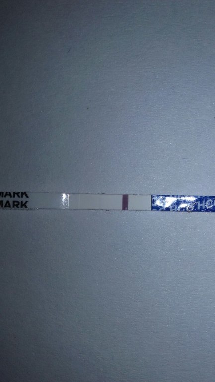 Ну вот нельзя просто чистый будет, если отрицательный? Обязательно дурацкую полоску эту показывать... (появляется сразу белой, при высыхании вмятиной оказывается...)