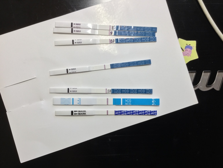 а ты видишь сама хотя бы слабо розовую? может по-ярчают? иногда сама видишь а как не пытаешься сфоткать не видно. а еще лучше купи цифровой он точно покажет он стоит столько стколько ты успела на эти потратить. или кровь сдай тогда будешь уверена в результате
