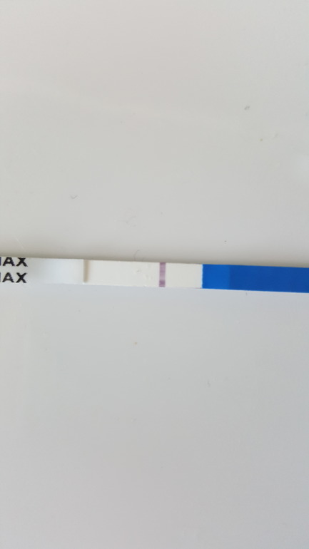До М ещё неделя, не знаю зачем сделала так рано, но мне так захотелось. В итоге полоска призрак минут через 5. Я как её увидела меня аж прострелило. Сейчас хожу смотрю на неё, она стала вообще еле уловима взглядом, боюсь, что это просто реагент. Посмотрите, вы её видите? Тест фемитест 25.