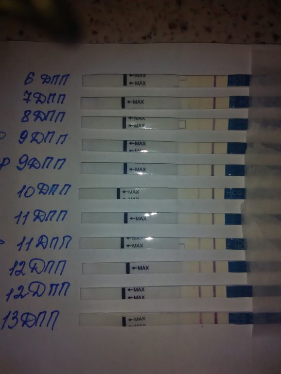 Всем привет. 25.05.17 мне сделали перенос 2х эмбриончиков 5ти дневочки . Сам перенос если кому то интересно безболезненная процедура. Даже интересно как все происходит самой было поэтому минут 15 просто лежала и наблюдала за действиями врачей. Около 2х часов пролежала в палате и уехала домой. Первые 3 дня я береглась. Практически все время лежала, избегала физической нагрузки ( хотя я жуткая акуратистка и для меня влажная уборка каждый день это как глоток воздуха но......) и настраивалась на позитив хотя мысли в голову лезли разные. 1.06.17 у меня должны были начатся месячные. За 2 дня до этого 30.05 я решила сделать тест. Естественно отрицательный. Начиталась всякой всячины в интернете что у некоторых начинает виднется призрак чуть ли не на второй день после переноса. Вообщем человек я впечатлительный и очень эмоцмональный начала все время думать и переживать. 31.05.17 пошла сдала анализ на ХГЧ результат 1,02 это был 5ДПП ( день после переноса). Рыдания, жуткая истерика вообщем все как и должно быть у таких перепуганых как я)))). На следующее утро я делаю тест уже без особой надежды и тут через 3 минуты она слабая вторая полосочка. Радости не было предела это даже обьяснить трудно. И каждый день я стала делать тесты. Полосочка становилась ярче ( на фото можете сами оценить) и на 11ДПП я пошла сдавать ХГЧ - 75,8. НЕ супер высокий но средний. Позвонила врачу сказал прогноз положительный через день пересдать. Вчера на 13ДПП я снова сдала ХГЧ - 194,1. Врач сказал великолепно дальше поддерживать 400 мл. утрожестана, фолиевую, йосэф и 16.06.17 на УЗИ. Вот так вот)))) Правда скорее всего у меня было поздняя имплантация поэтому точно какая неделя сказать я не могу. Буду вести блог может кому то будет интересно. Всем спасибо)))
