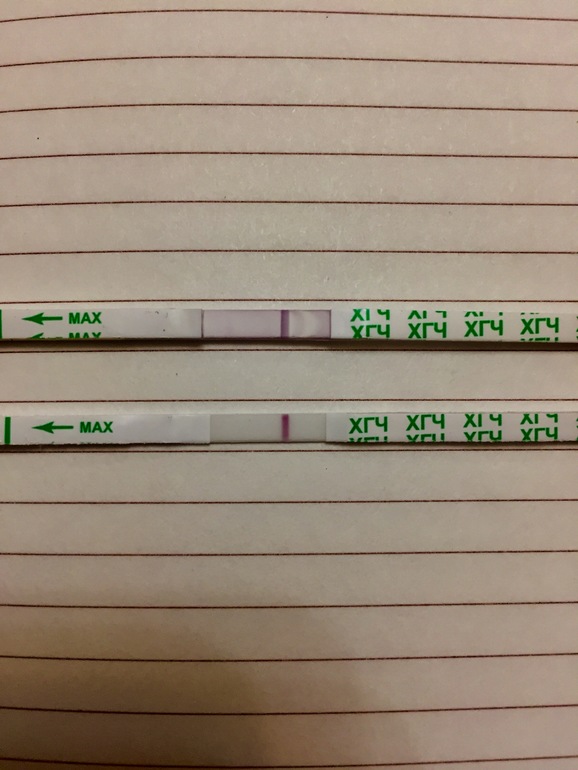 Около 5 часов вечера был сделан тест, сразу появились две полоски и не исчезли, пила после этого воду, но не прям много, около 9.30 вечера переделала, полоска пропала. Верхний - 5 ч, нижний соответственно 9.30
