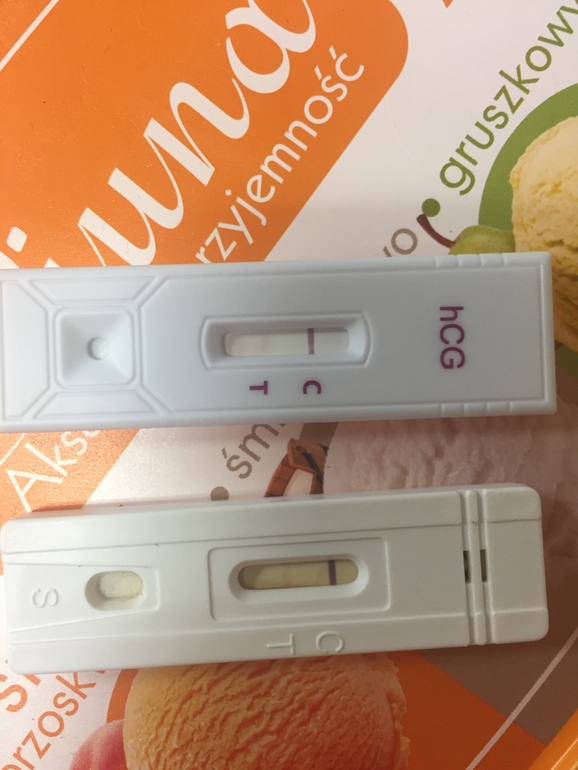 Другие вопросыСделала сегодня тест. Результат на фото. Вот только идут месячные с кусочками крови. Это нормально? У меня что выкидыш? Смотрите нижний тест.