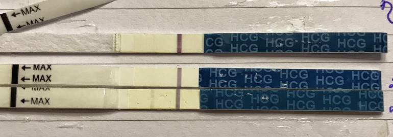 на этой фото первый тест сегодняшний , второй и третий с моей первой беременности(т.е точно положительные)