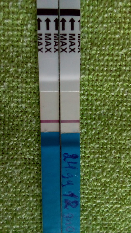 Справа тест с прошлой беременности, слева- сейчас на 9 дпо. Видно, не реагент?
