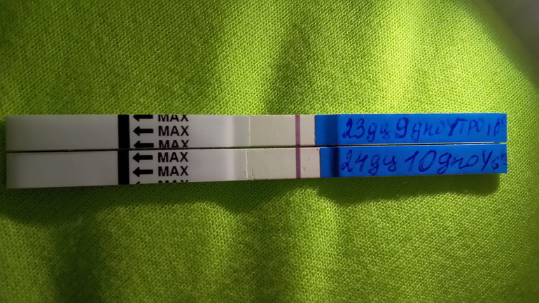 На этом видно полоску, а на других скорее реагент. На просвет у них у всех видна полоска