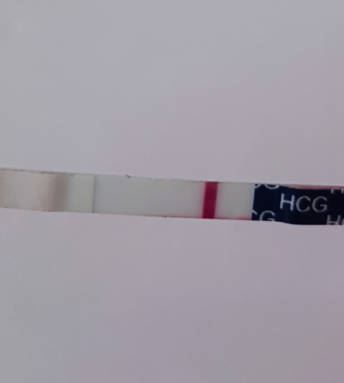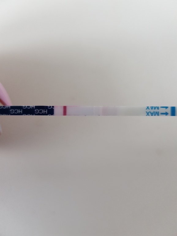 Это не фрау, это Ева. Сегодня тоже есть такая полоска, но не ярче( похоже реагент. Либо еще маленький хгч