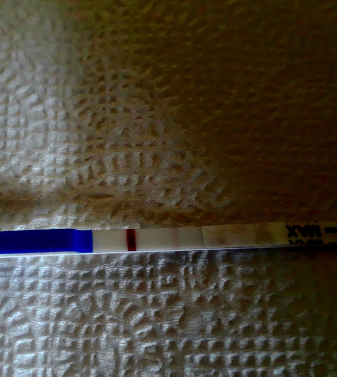 Полоска есть, но у меня на днях тоже была такая и оказалось реагентом. Вам желаю настоящую