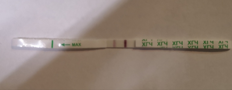 Уже беременная полоска мне кажется ярче, чем та которая всегда проявляется всегда