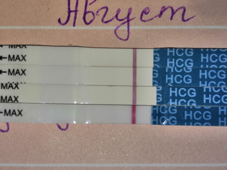 Растеелась краска реагента по краям того места где должна быть полоска. У Эви полоска дальше.