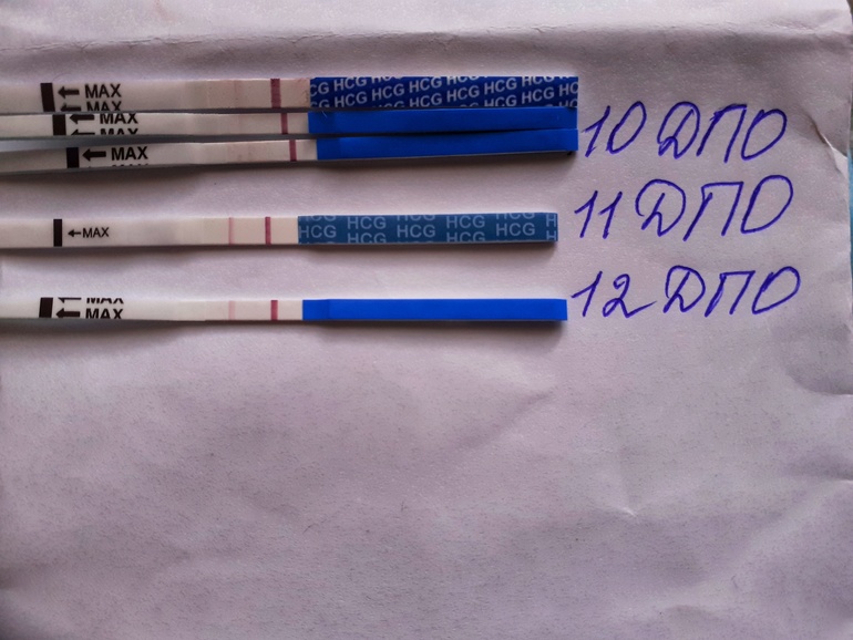 Но я боюсь, что через два дня начнутся месячные, потиягивает чуть низ живота, может просто организм не понял, что есть беременность. Хотя отдыхаю целый день. В первую беременность тест показал в день задержки слабую полоску. А сейчас начала появляться на 8 дпо.