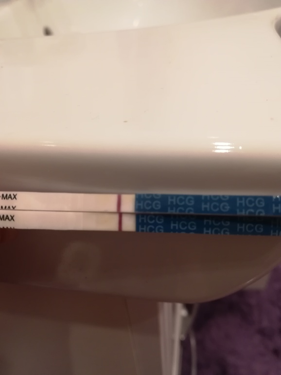 Гляделки. Есть полосочка? (Категория для тех, кто незнает свой ДПО)Девочки, посмотрите, есть полоски или одна я вижу? В ноябре была б*б. Полоска тогда была слабая, но розовая, на 10дпо. Здесь они серые((реагент?